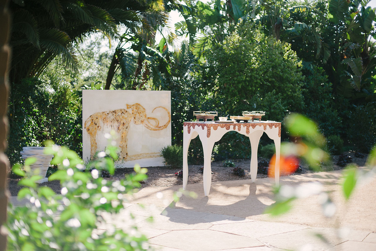 There is no lovelier way to spend twilight in Montecito than to sip decadent cocktails and eat artfully presented canapés while strolling amidst beautiful gardens interspersed with works of contemporary art. Each dining station and bar at this stunning event was inspired by a different contemporary work of art. Food, flowers, art and décor elements all worked together to create a meaningful story about the power of artistic expression in our lives.