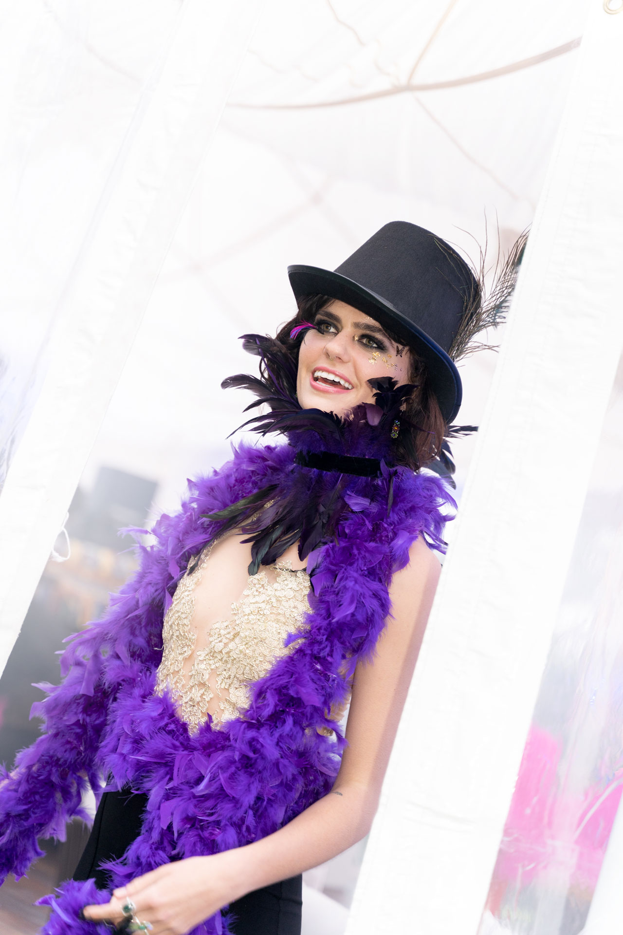 We were asked to create a memorable birthday party and turn the backyard of a historic Santa Barbara home into an over-the-top, tented desert rave celebration for a small, well-traveled, and high-energy group of close friends. Party goers gathered in a lush environment inhabited by airbrushed, elaborately costumed dancers, and colorful, eclectic decor for the cocktail hour before being led to a stunning, multi-course candlelit, poolside dinner. Guests later returned to the tent which was wildly lit for a late-night dance party featuring multiple DJ's and go-go dancers. A "Burner Bar" featured herb and fruit infused cocktails throughout the night. Some of the activities for guests included airbrushing, costuming, and tarot card reading by a mystical oracle. Exciting experiential elements made for a memorable and incredibly fun micro event.