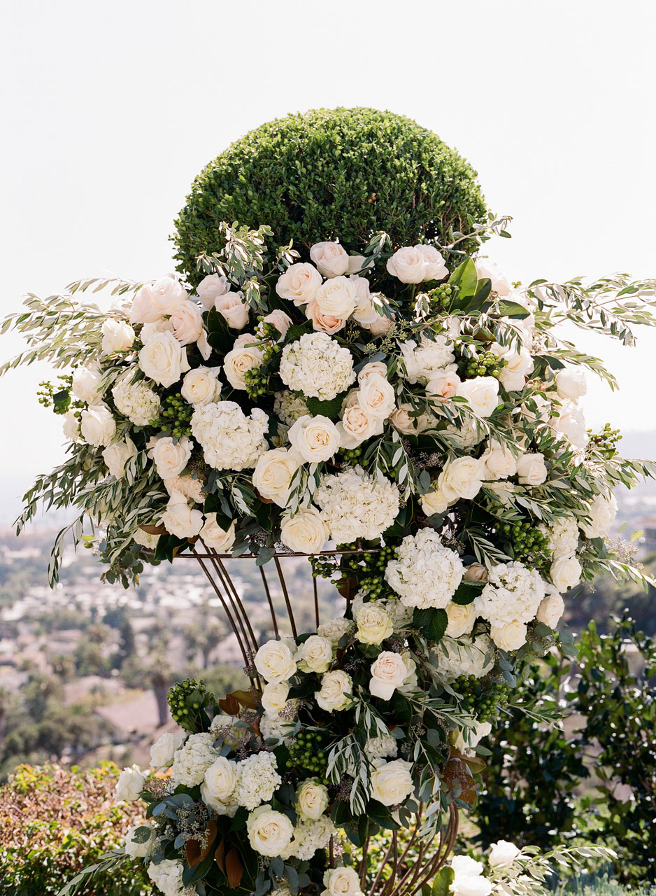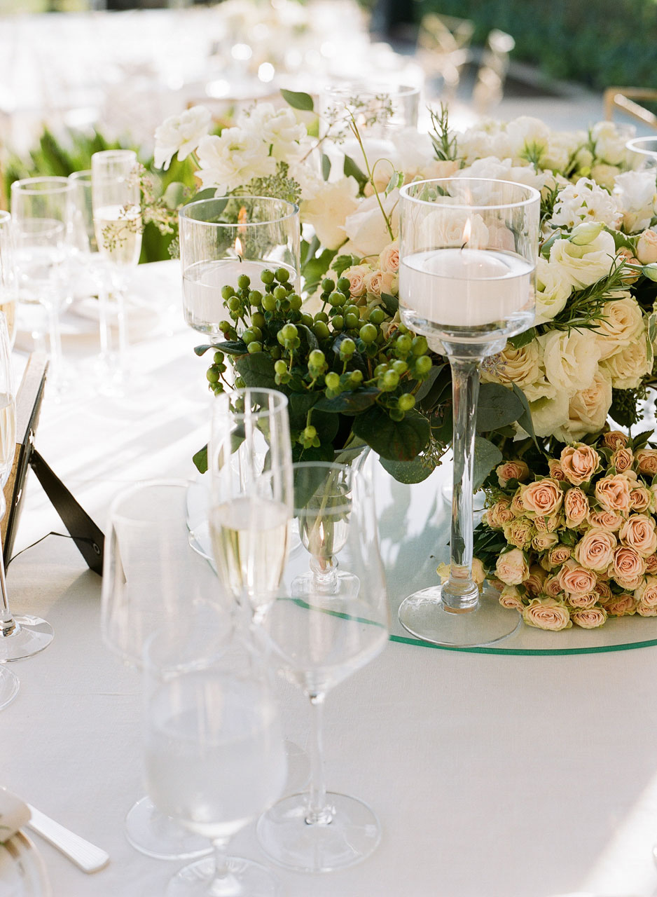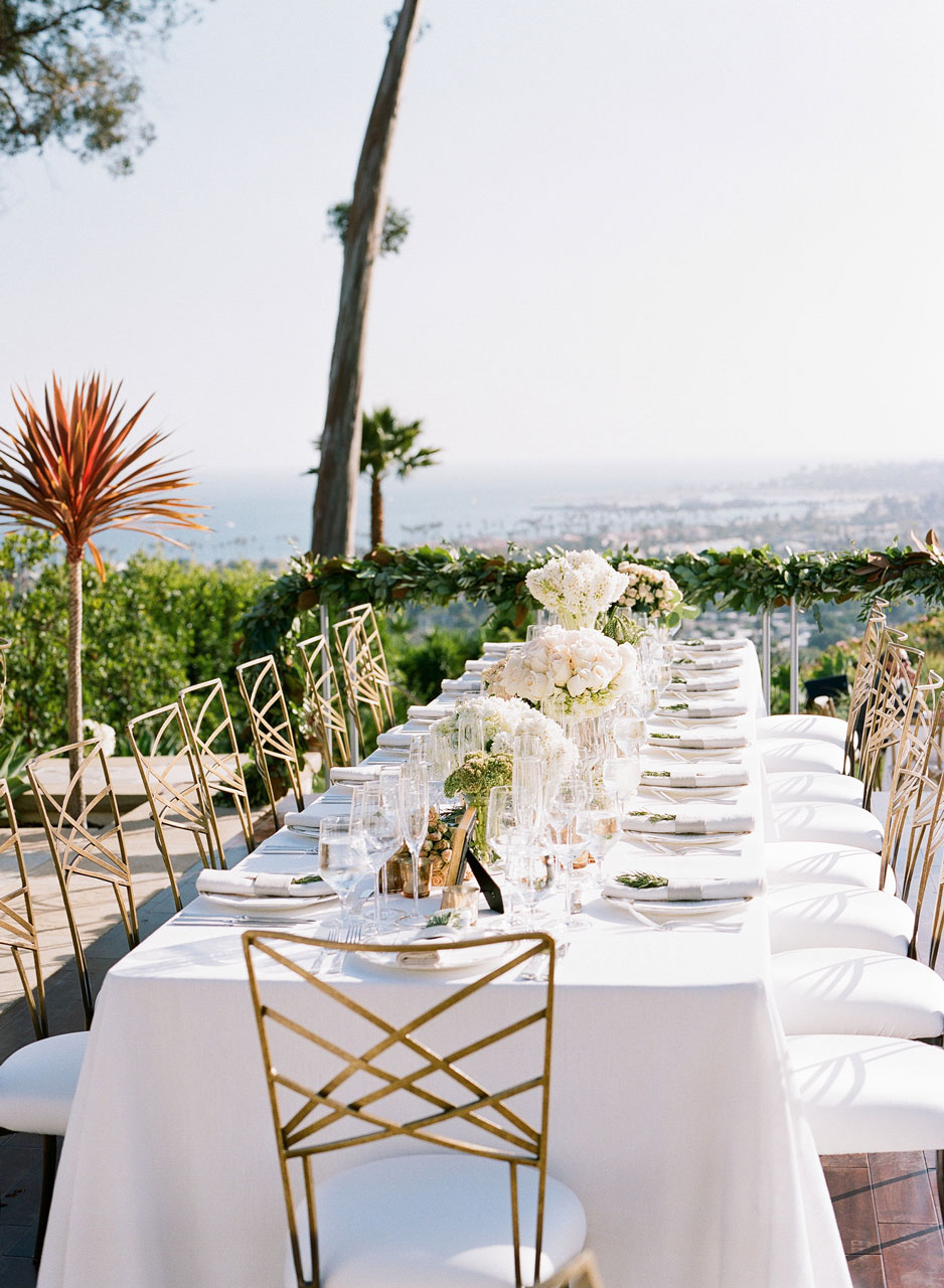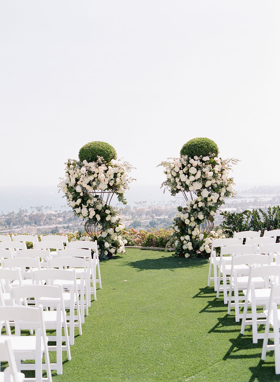 This glorious wedding took place on a perfect summer night, high above Santa Barbara, with sweeping views across the city and harbor as classical music filled the air. As each bridesmaid and groomsman walked down the aisle, another classical musician joined in, culminating in an incredible orchestra that played as the beautiful bride and her handsome father walked down the aisle. This was an evening of amazing Italian food, great music, elegant décor, and epic views. The swimming pool was covered in mahogany and plexiglass, lit from below, creating a fabulous dance floor that was packed all night. After the reception ended, draping was pulled back to reveal a nightclub created just for the occasion, where a late night dance party ensued until the wee hours of the morning. Late night bites, speciality cocktails and outdoor lounges with masses of candles under the stars made for a memorable and majestic evening.