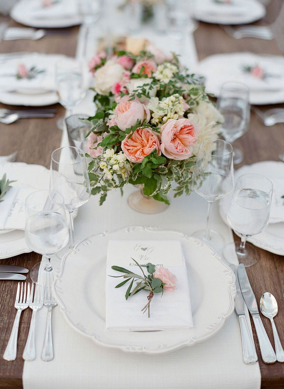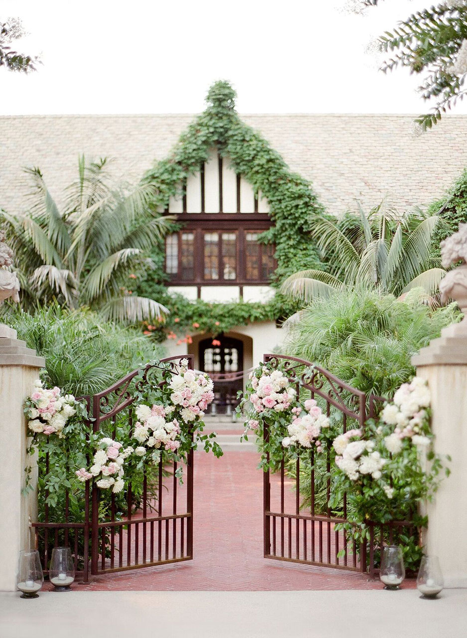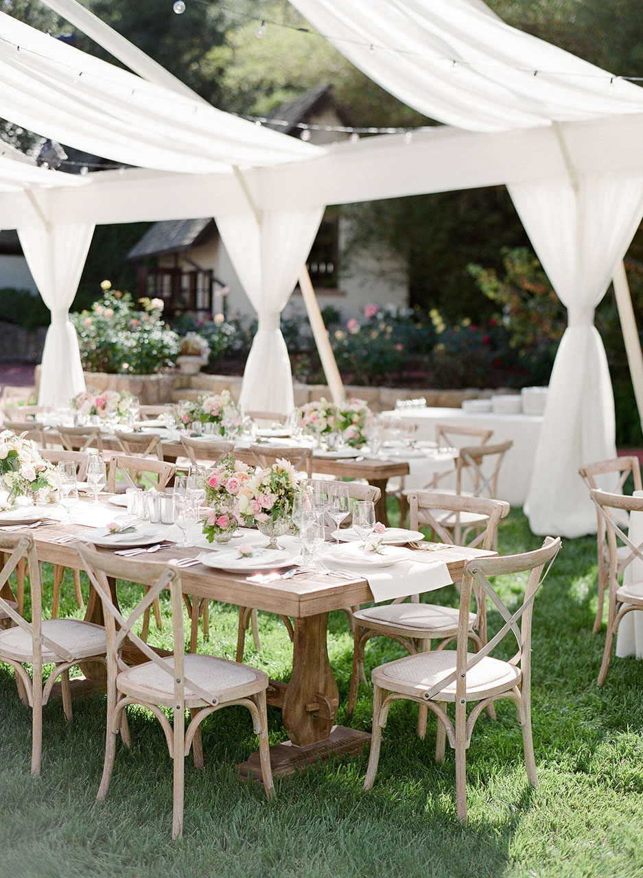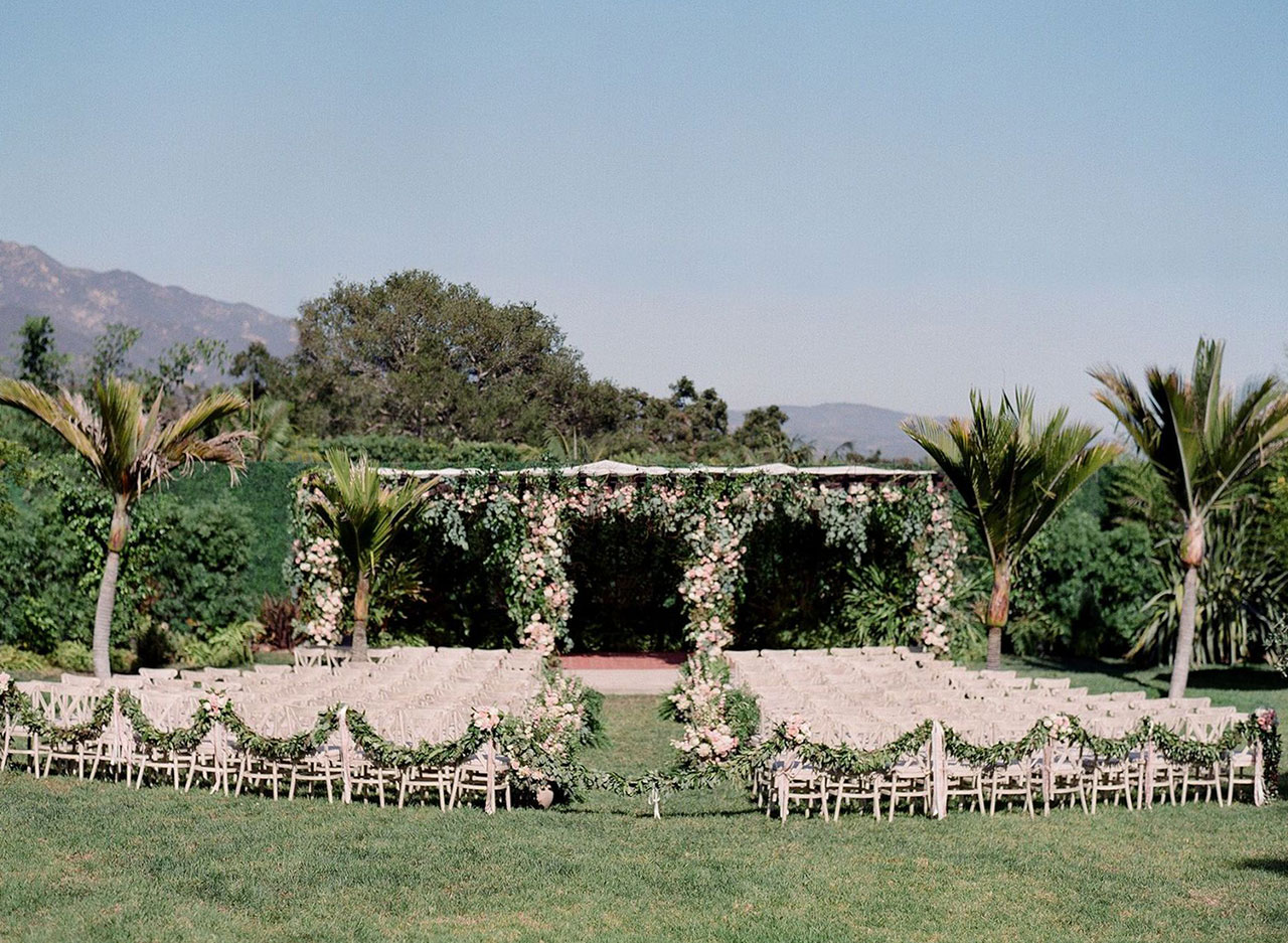 This wedding was truly a fairytale from start to finish. It took place on a warm and brilliantly sunny afternoon at an enchanted, old-world estate in Montecito, amidst a profusion of towering trees and an enchantingly landscaped, verdant property. Flowers and masses of vines cascaded over the ceremony structure, a vintage arbor, by the estate’s tennis court. The couple was surrounded by garden roses, peonies, ranunculus, hydrangea and a profusion of color and fragrance. A quartet played throughout the afternoon, ending with 'Here Comes the Sun' as the couple recessed. Cocktails took place by another old arbor in a citrus orchard, alongside an antique fountain and pond, as koi swam about and 1960’s music filled the air. Dinner was a sumptuous, multicourse, traditional family-style Italian feast. Opulent floral arrangements and dappled candlelight graced the charming wooden tables, draped in white linen runners. Overhead, a shade canopy was created with white linen drapes that allowed glimpses of the brilliant blue sky above. As night fell, the canopy glowed with twinkle lights, brilliant chocolate up-lighting and patterned texture. The entire estate was masterfully lit, creating an ethereal, magical glow that lasted all evening long. After dinner, guests were invited into a charming Italian pasticceria in a small, white cottage on the property which was brimming with elaborate, petite cakes, gorgeous hand painted cookies, Italian candy, an espresso bar, and a gelateria. Truly a sweet event that no one will soon forget!